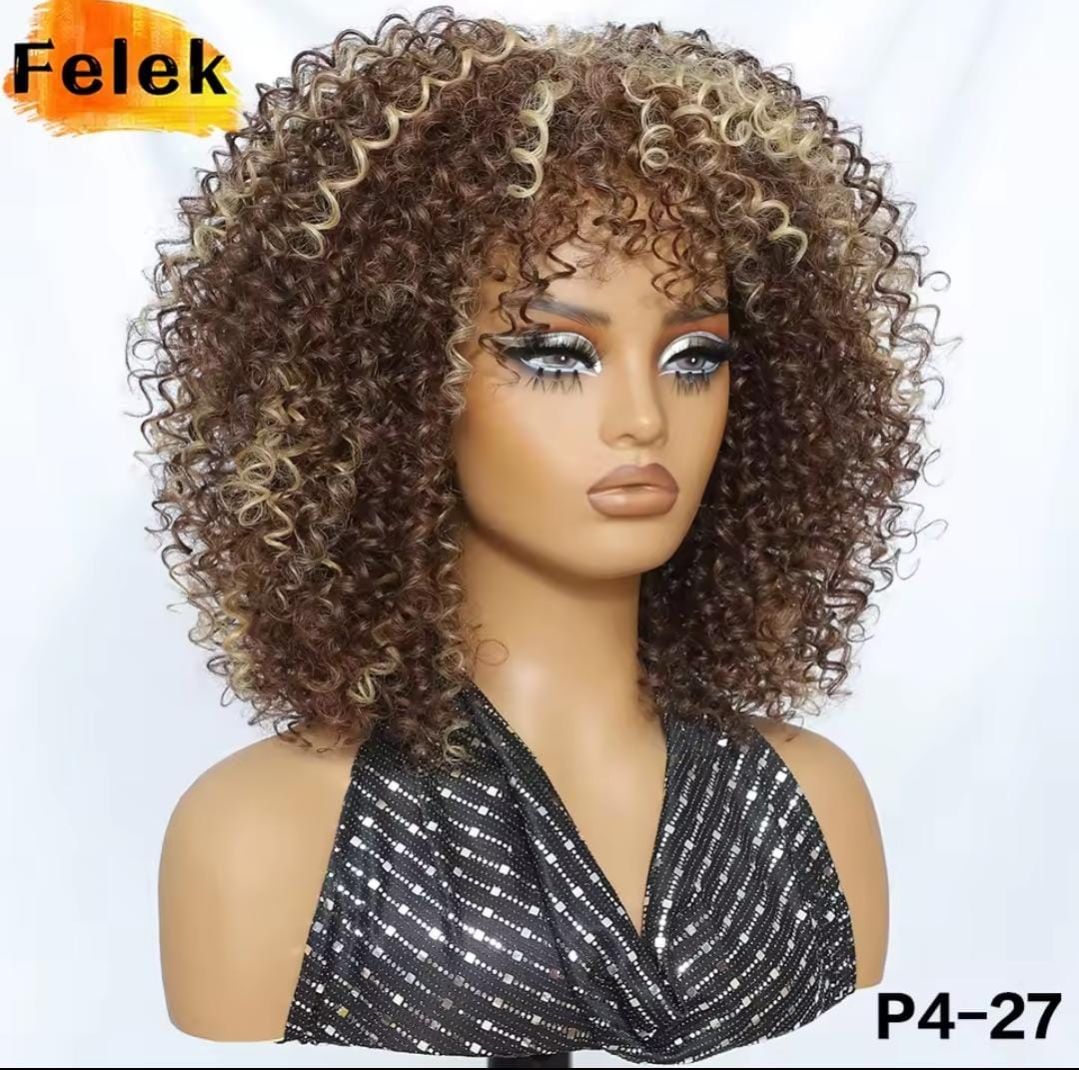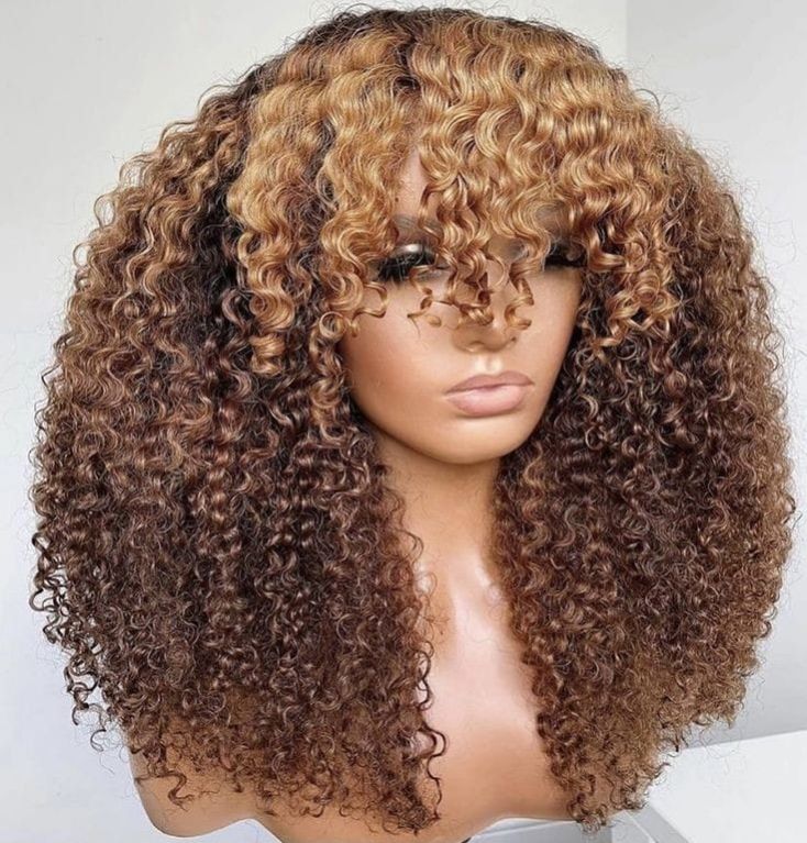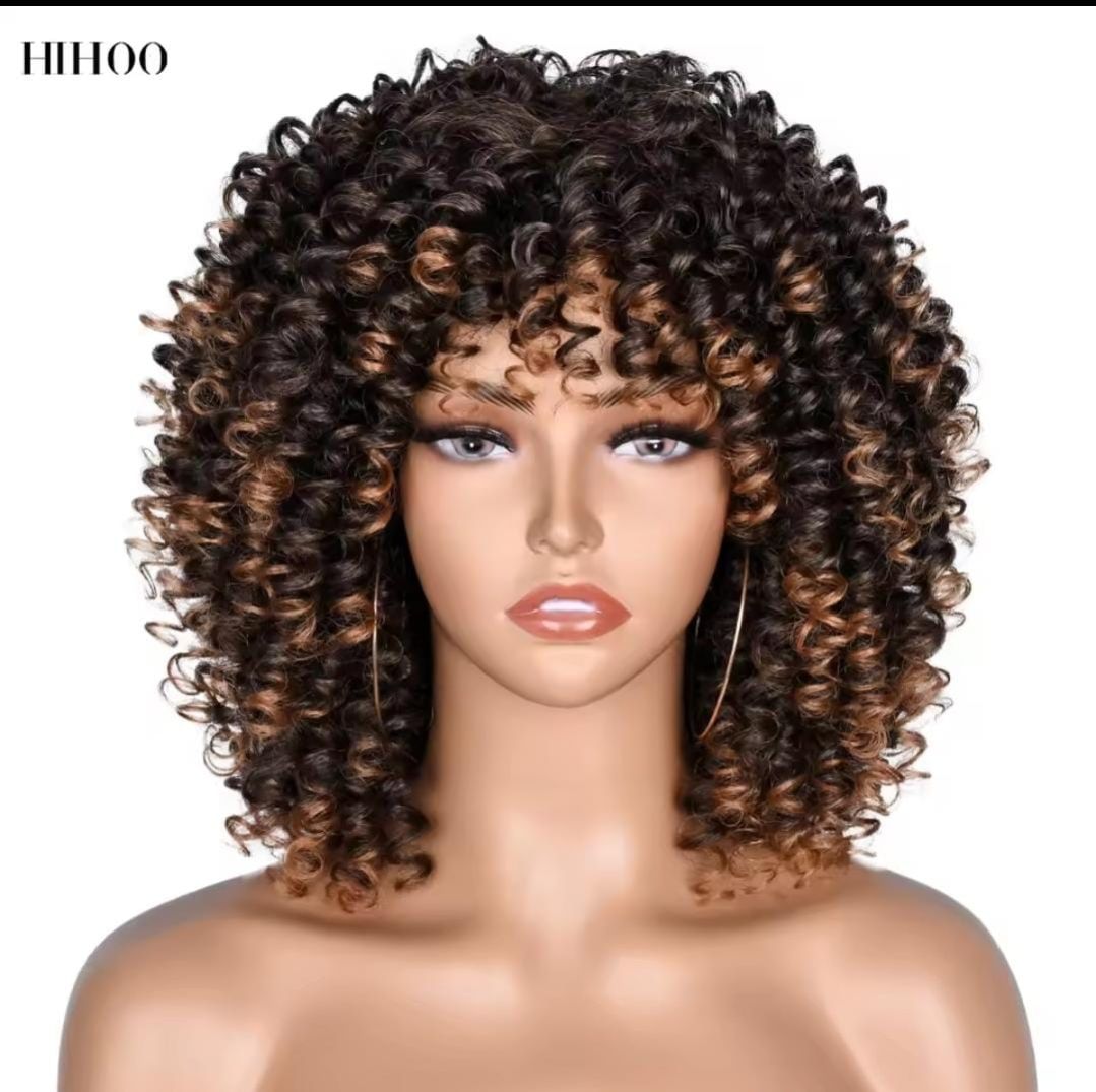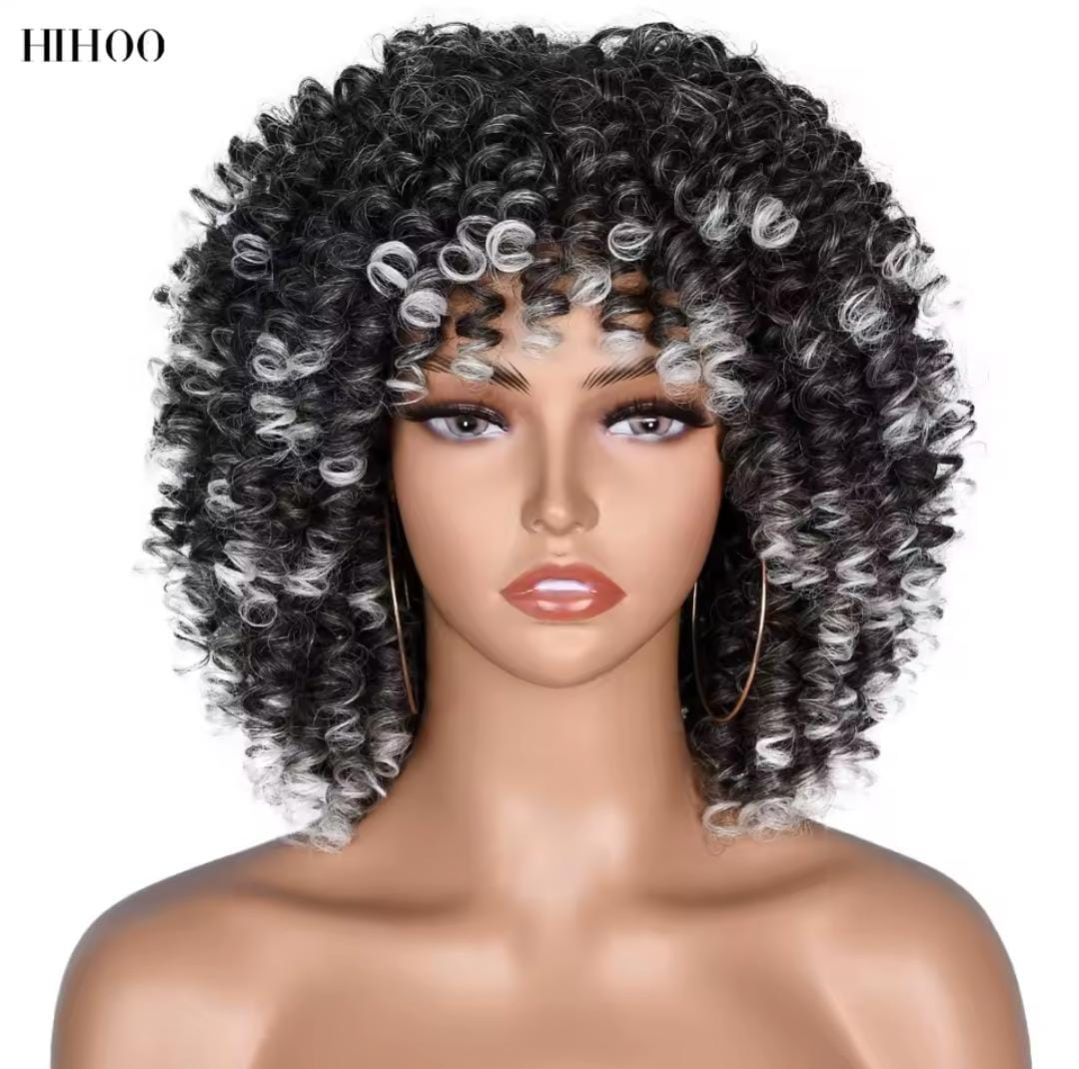 Peluca de fibra Sintética con rizos firmes y voluminosos. Aporta un estilo audaz y lleno de personalidad, sin necesidad de mantenimiento diario.