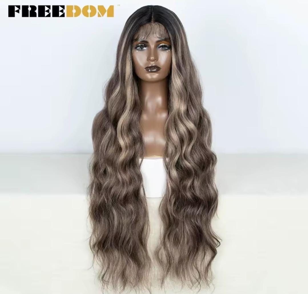 Peluca de fibra sintética con ondas suaves y definidas. Brinda un estilo natural y con movimiento, Perfecta para un look moderno y femenino.