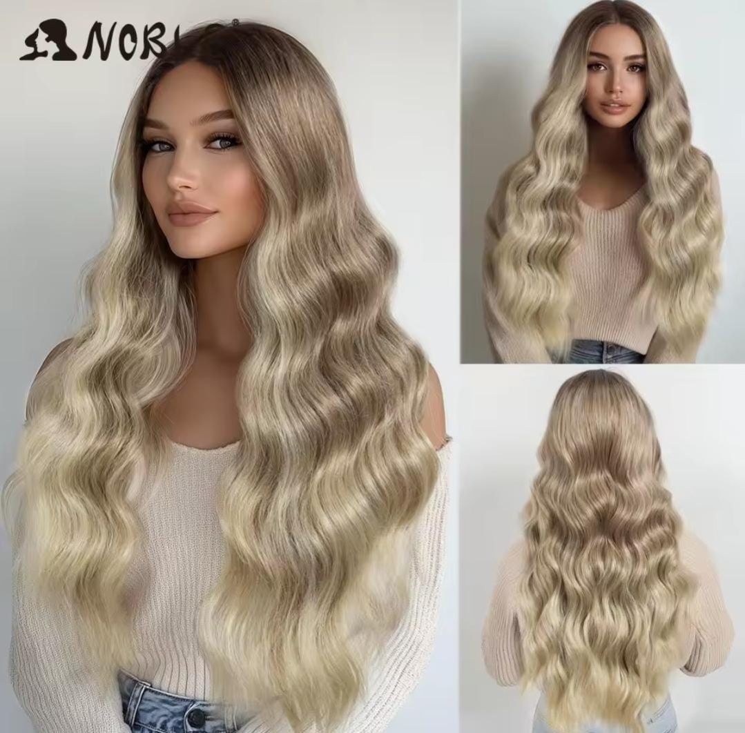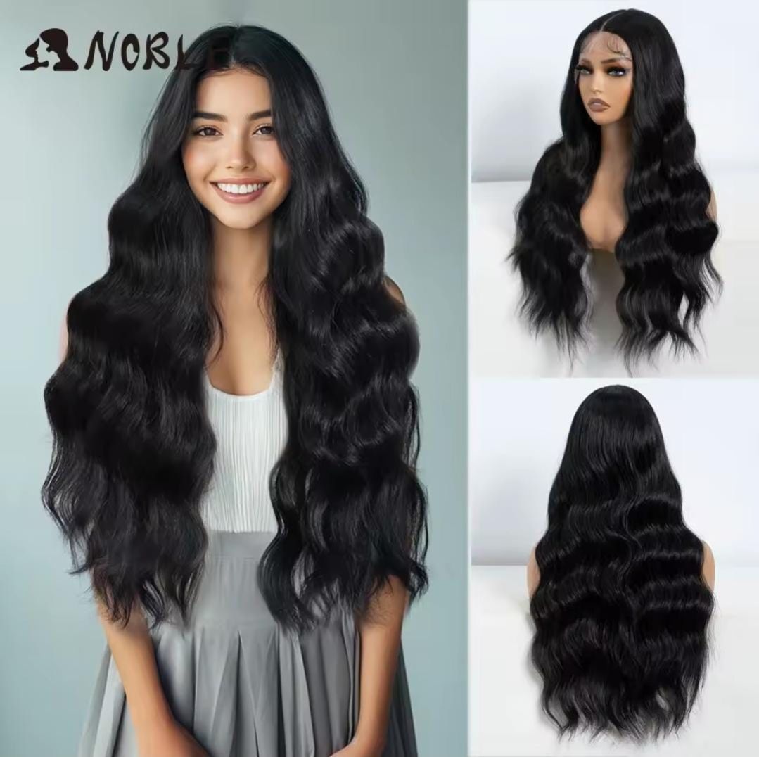 Peluca de fibra sintética con ondas suaves y definidas. Brinda un estilo natural y con movimiento, Perfecta para un look moderno y femenino.