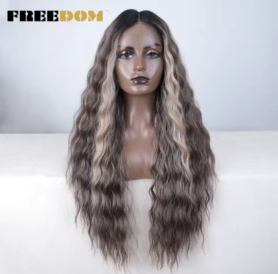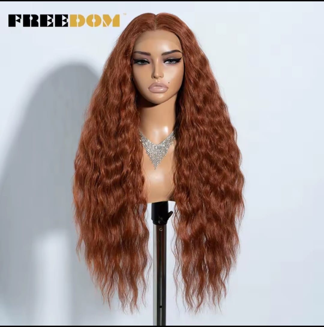 Peluca de fibra sintética con ondas suaves y definidas. Brinda un estilo natural y con movimiento, Perfecta para un look moderno y femenino.